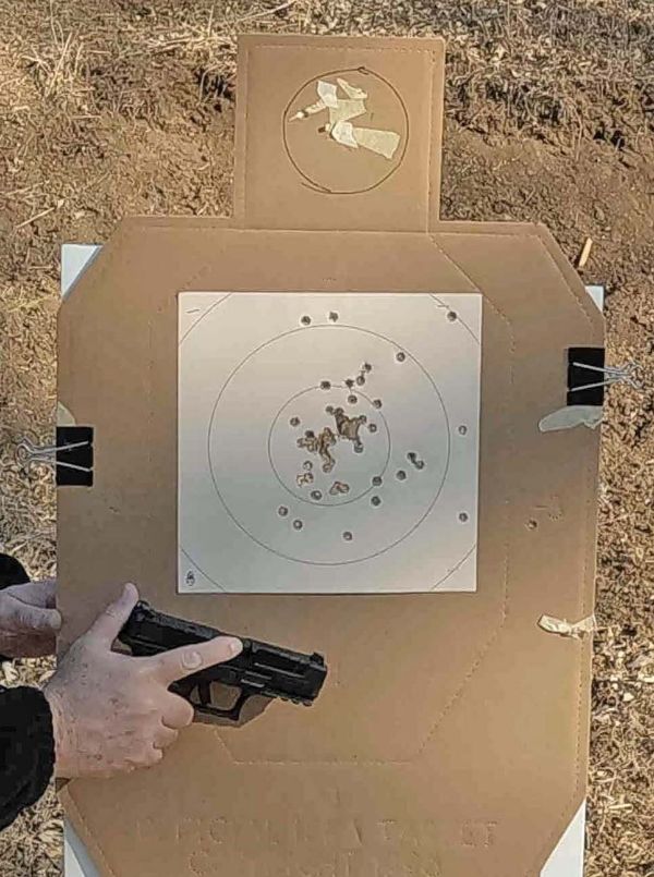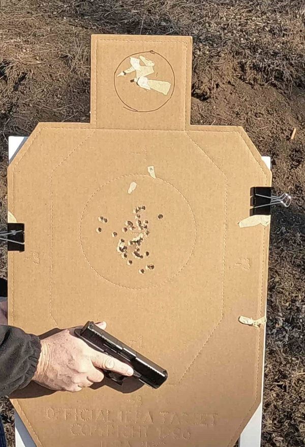 The GLOCK with plastic sights had them all in until the 25-yard line. The one out wasn’t out far, just far enough.
