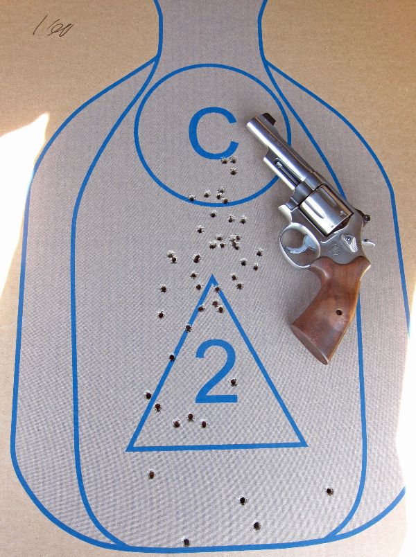 With the revolver, it was likewise glum. I only had 8 hits in the circle, with 42 below it. Five hits were perilously close to the bottom line. The gun can clearly outshoot that – with the same ammo.