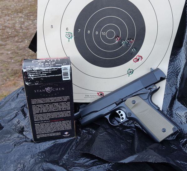 I used some old stock ammo, ASYM Practical Match 230gr. FMJ. Anything ASYM made was consistent and accurate. Any issues in scoring would be mine.