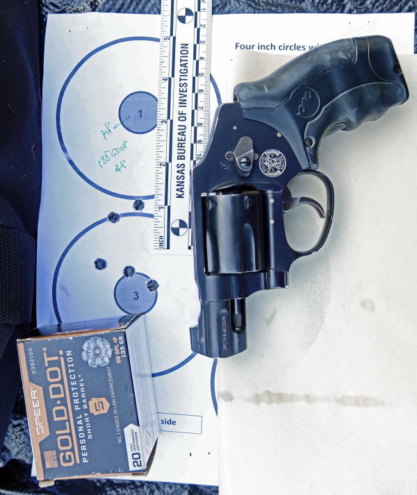 From the story – “In a personal M&P340 with a replacement XS front sight, the load generated 822 fps average and put four of five hits into 1 7/8”, a remarkable effort. The load hit dead on to the sights … I did get failure to fire problems on the second round in each string; I’m thinking it’s my old gun, tired out and in need of respringing.”