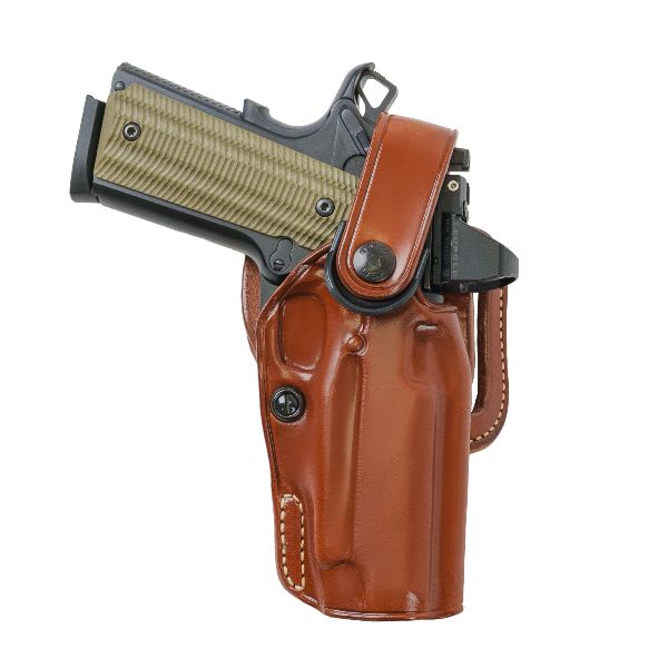 Designed for open carry when hunting, hiking, camping, or adventuring in the wilderness, the versatile APO can be worn in either the strongside or crossdraw position at the user's preference. The low ride positioning increases comfort and helps to clear pack straps or other gear. A traditional retention strap features a glove-friendly polymer tab, and secures the pistol in the brush, over rugged terrain, or when riding a horse, motorbike or ATV/UTV. Tension screw adjustment allows for a custom fit to the pistol.