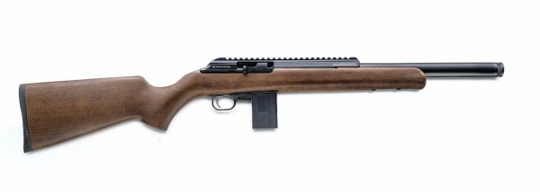 The rifle's pistol-grip stock provides a solid, natural feel that contrasts with the rifle's modern mounting surfaces. This combination of traditional wood furniture and contemporary interface options gives the Bushranger a distinctive balance between classic rimfire familiarity and current rifle adaptability. At 5.43 pounds and 29.25 inches overall length, the platform remains lightweight and manageable for extended sessions on the range.