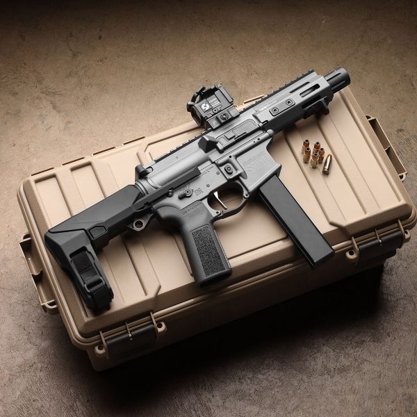 Combining an ultra-short 5.5" barrel with the compact SB Tactical® HBPDW™ collapsible brace, the result is a short and maneuverable platform ideal for tight spaces. Forged upper and lower receivers provide a rock-solid foundation, while the full-length top Picatinny rail offers ample room for optics and accessories. A direct blowback system provides time-tested reliability.