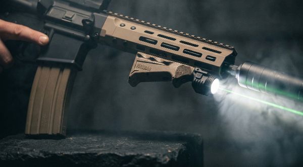 - Integrated green laser and 1,850-lumen tactical light within a single foregrip platform