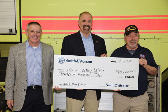 SPRINGFIELD, Mass. – Smith & Wesson Corp. today announced that it has contributed $34,000 to the Pioneer Valley USO. For over a decade, proceeds from the company’s annual Game Dinner have benefitted the Pioneer Valley USO and its programs supporting American military personnel and their families. Armed forces members and families access the USO for social, recreational, educational and entertainment programs and services.