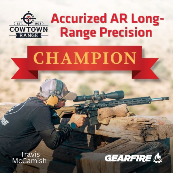 Gearfire is proud to congratulate Travis McCamish, Director of Manufacturer Relations, on winning the Cowtown Range Accurized AR Championship by securing first place in the Open Division. McCamish’s elite performance also earned him the top-spot for Overall Match and the title of Season Champion.
