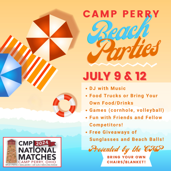 CAMP PERRY, Ohio – As a way of providing more socializing prospects for guests of the 2024 National Matches off the range, the Civilian Marksmanship Program (CMP) has added Beach Parties and Movie Nights to the calendar!
