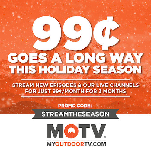 “For high-energy entertainment in the field, on the water, or in the comfort of home, you can't beat three months of MyOutdoorTV for just .99 cents month,” shared Sr. Vice President and MOTV General Manager Sean Luxton. “This holiday deal won't last long, so head to MyOutdoorTV.com and sign up before it's gone.”