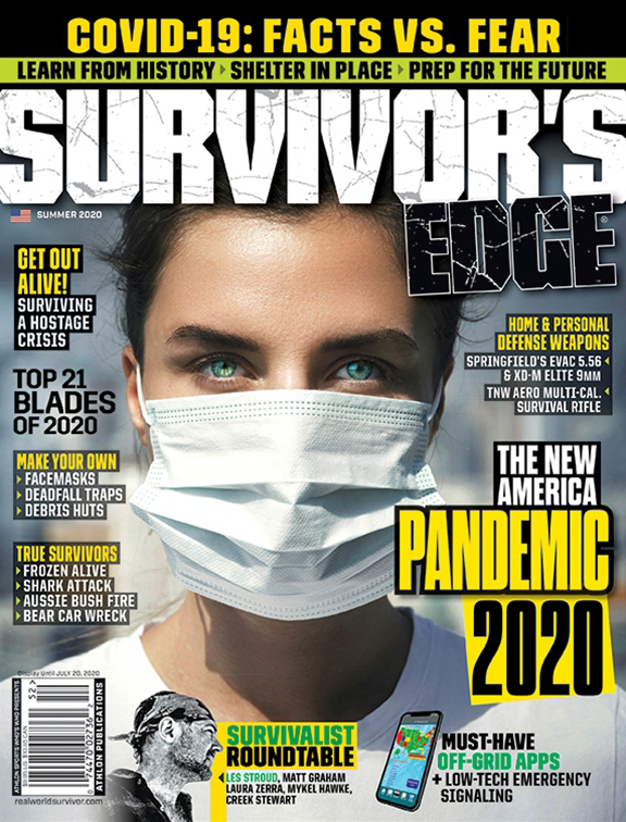 The Summer 2020 issue of Survivor’s Edge magazine offers of compendium of counsel on defeating the coronavirus in its tracks. Within a nearly 20-page special section on the COVID-19, medical experts parse out the truth about the pandemic, weeding through myths and misinformation to provide the base facts: How it affects you and what you can do to stay safe from infection. Then survival/prepper specialists weigh in on how to keep you and your family safe during these insecure times.