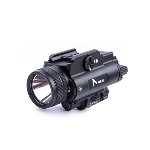 The WL25 state-of-the-art tactical weapon light was designed in Germany and engineered to meet the demands of law enforcement, military personnel and professionals requiring crucial forward illumination and aiming in time-critical situations. It features a three-mode toggle switch control (Laser / Laser + White / White) for quick and intuitive operation, even with gloves on. The ambidextrous toggle switches allow users control from either side; a single click for constant-on, a press-and-hold for momentary-on, and double-click to switch between high and low modes. Once switched off, this intelligent weapon light resumes the previous brightness setting when powered back on.